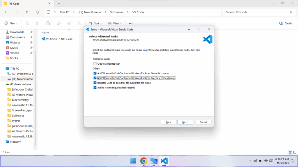 • Step 4: Check the boxes for adding VS Code to your system path (recommended).