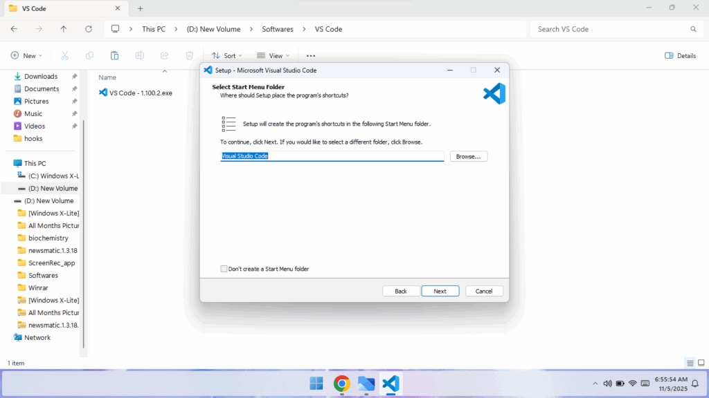 Once you have downloaded VS Code using the Download button, double-click the setup file to install it.